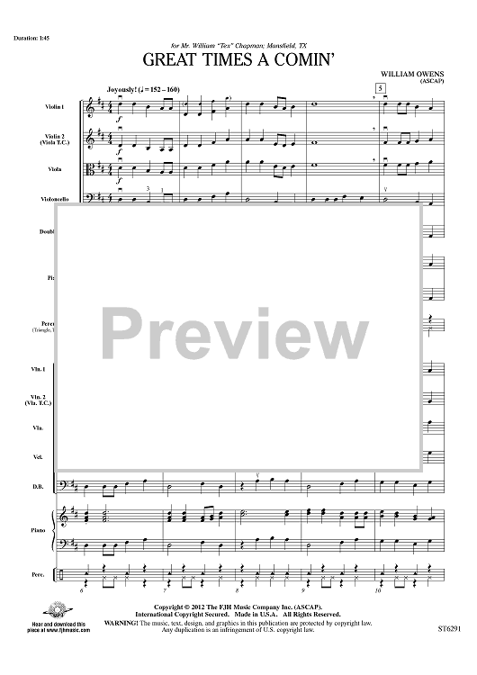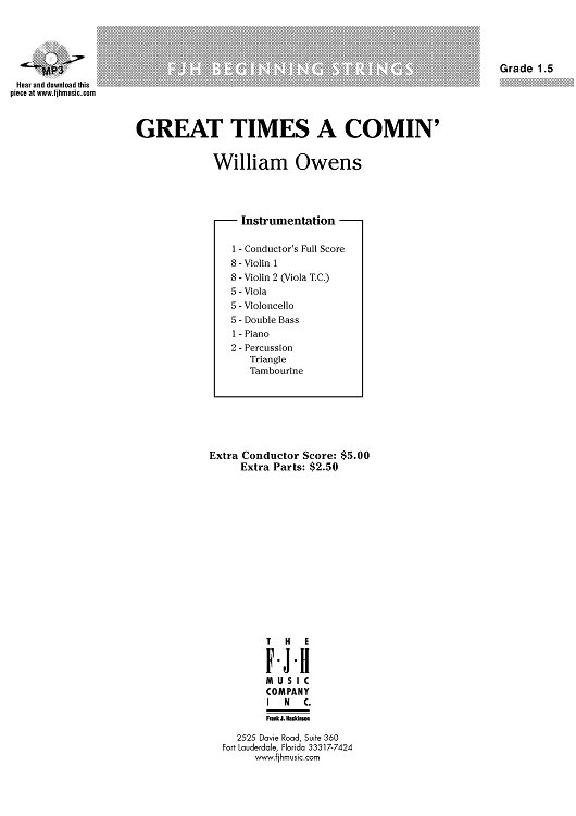 Digital Sheet Music for Great Times A-Comin' - Score by William Owens scored for String Orchestra; id:432152