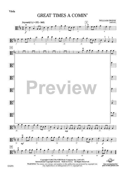 "Great Times A-Comin' - Viola" Sheet Music by William Owens