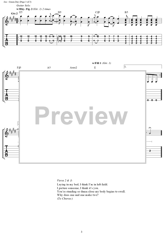 Digital Sheet Music for Green Day by Billie Joe Armstrong, Green Day scored for Guitar Tab/Vocal; id:109343