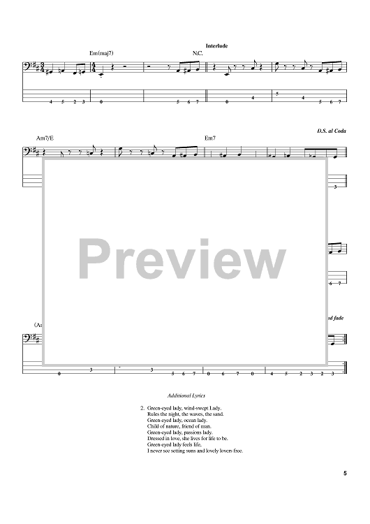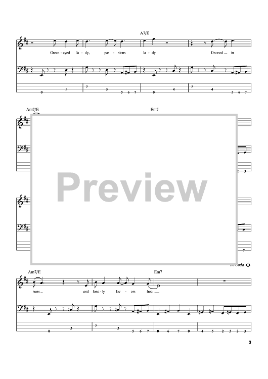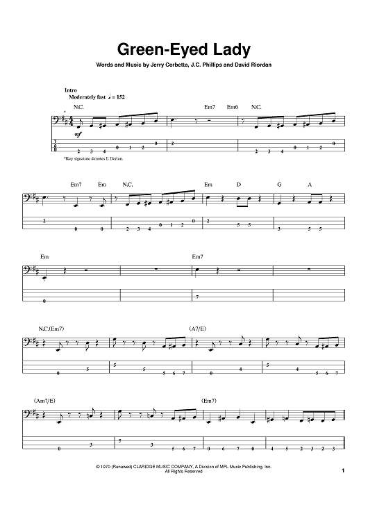 Digital Sheet Music for Green-Eyed Lady by Jerry Corbetta, J.C. Phillips, David Riordan, Sugarloaf scored for Bass Tab; id:388288