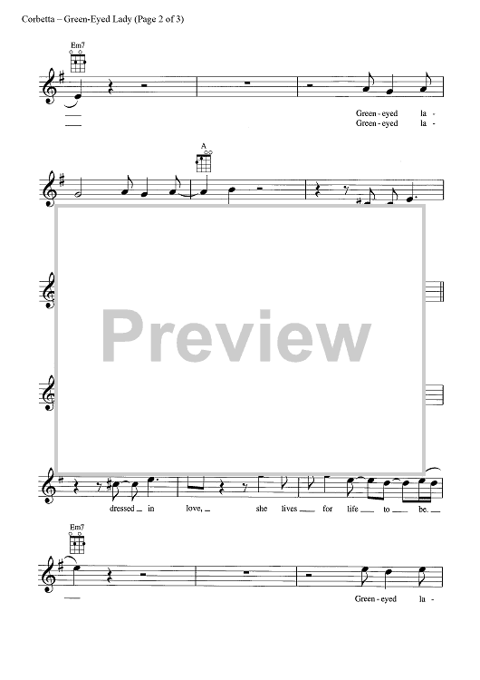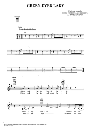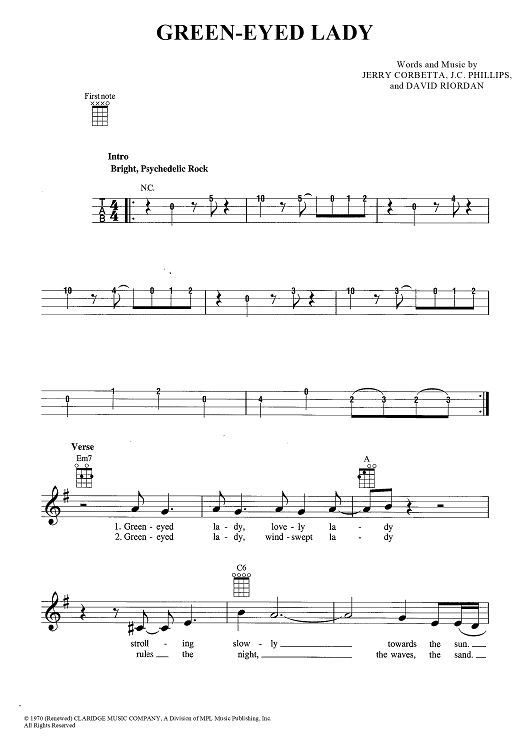Digital Sheet Music for Green-Eyed Lady by Jerry Corbetta, J.C. Phillips, David Riordan scored for Ukulele/Vocal; id:449749