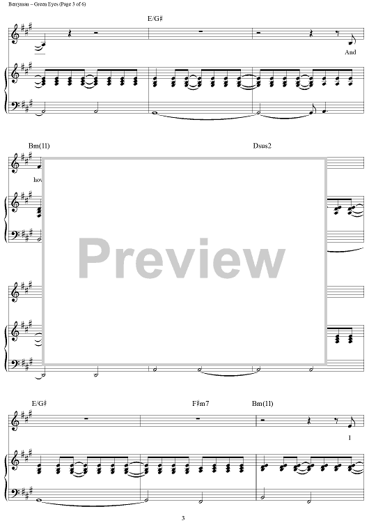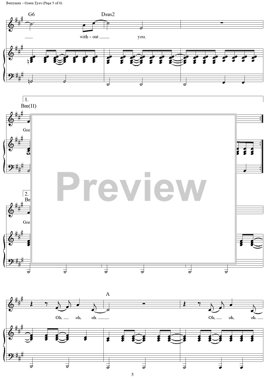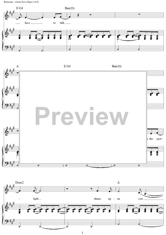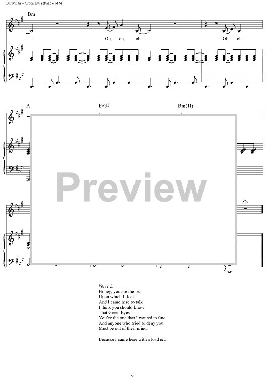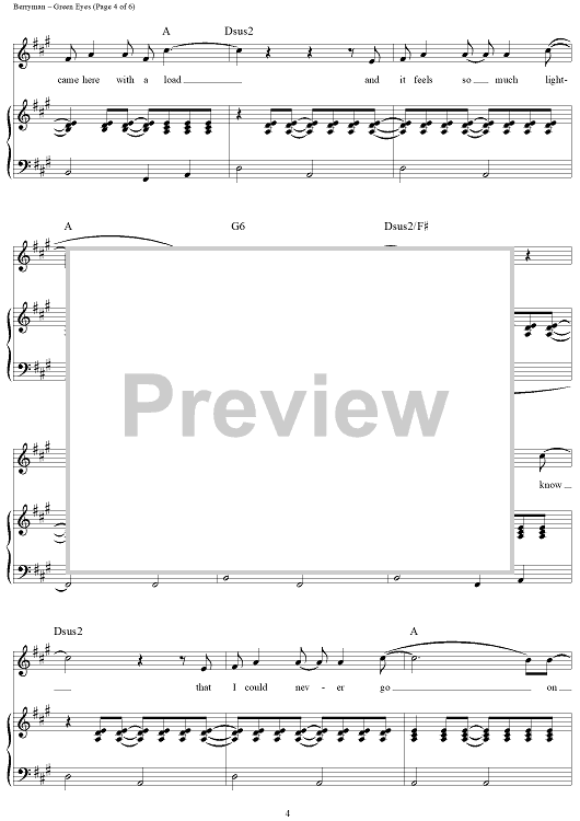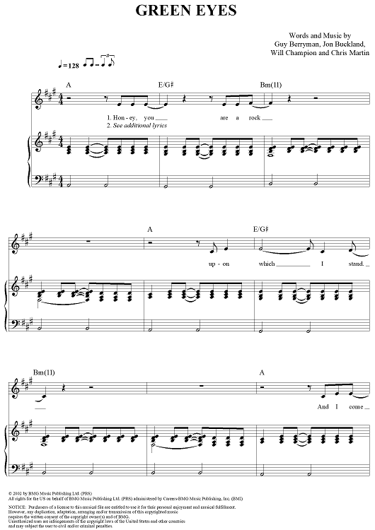 Digital Sheet Music for Green Eyes by Chris Martin, Coldplay, Jonny Buckland, Guy Berryman scored for Piano/Vocal/Chords; id:321318