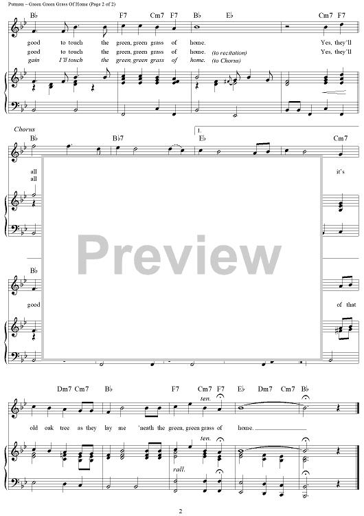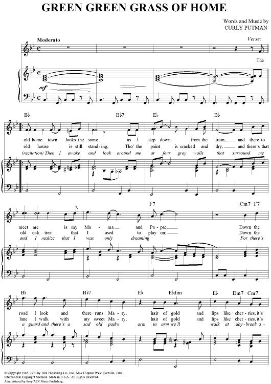 Digital Sheet Music for Green Green Grass of Home by Tom Jones, Porter Wagoner, Curly Putnam scored for Piano/Vocal/Chords; id:360931