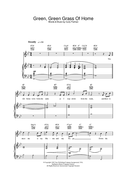 Digital Sheet Music for Green, Green Grass Of Home by Curly Putman, Katherine Jenkins scored for Piano/Vocal/Chords; id:397703