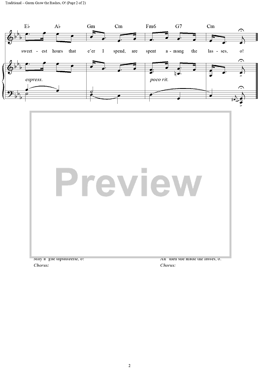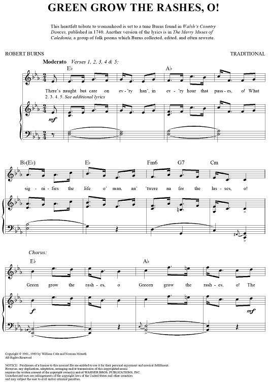 Digital Sheet Music for Green Grow the Rashes, O! by Robert Burns, Norman Monath, Traditional scored for Piano/Vocal/Chords; id:261129