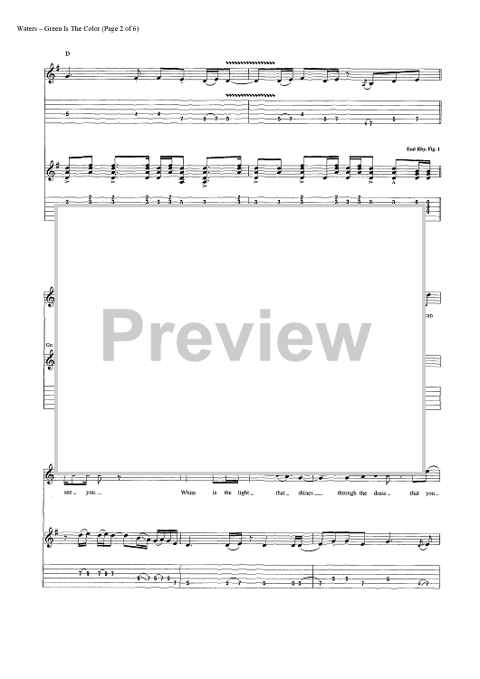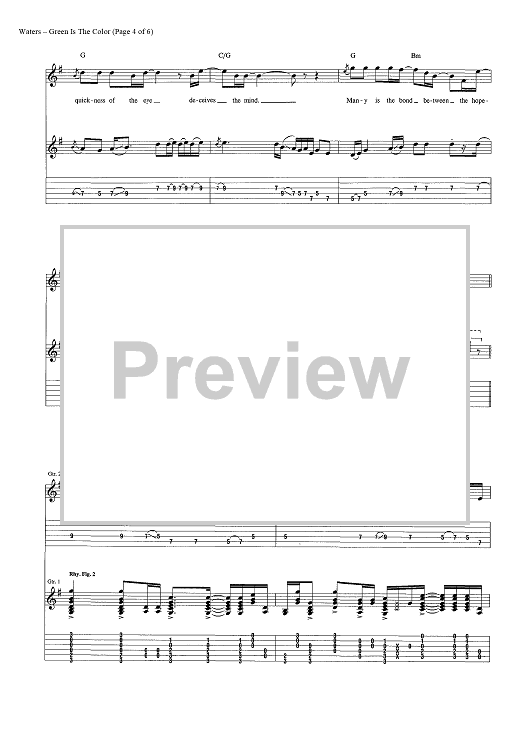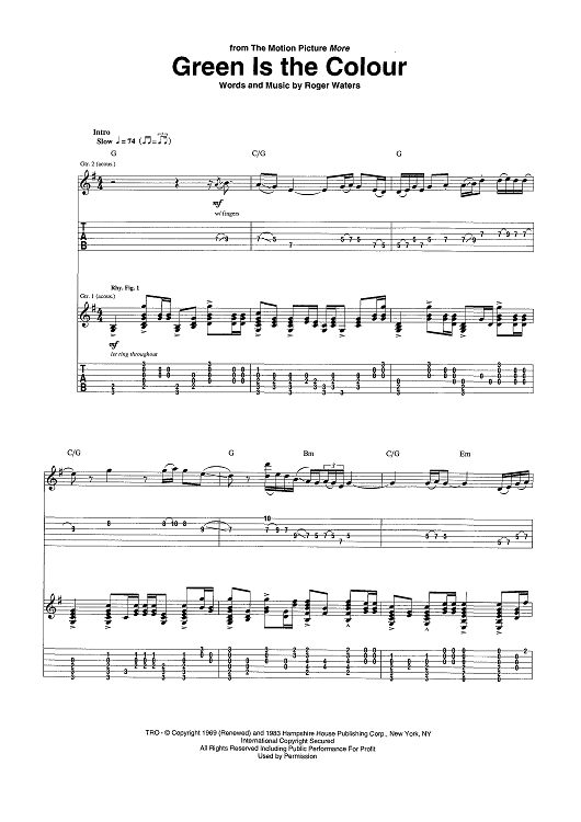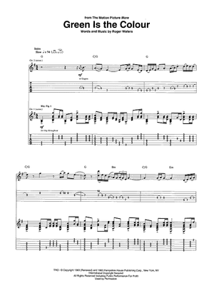 Digital Sheet Music for Green is the Colour by Pink Floyd, Roger Waters scored for Guitar Tab/Vocal/Chords; id:444885