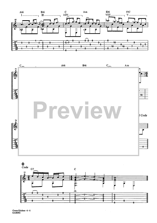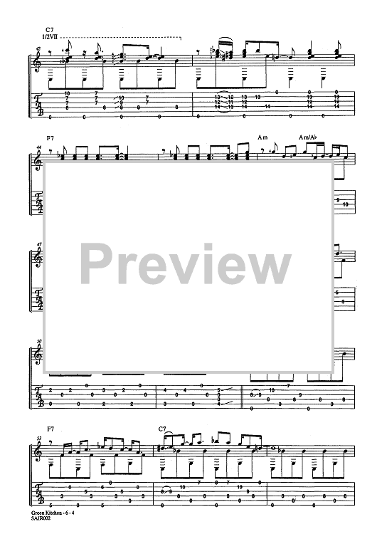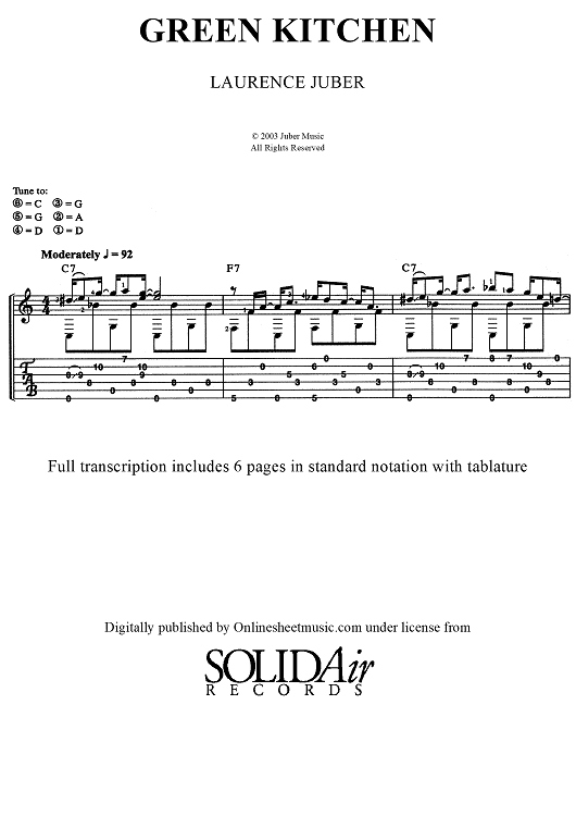 Digital Sheet Music for Green Kitchen (No MP3) by , Laurence Juber scored for Guitar Tab; id:452176