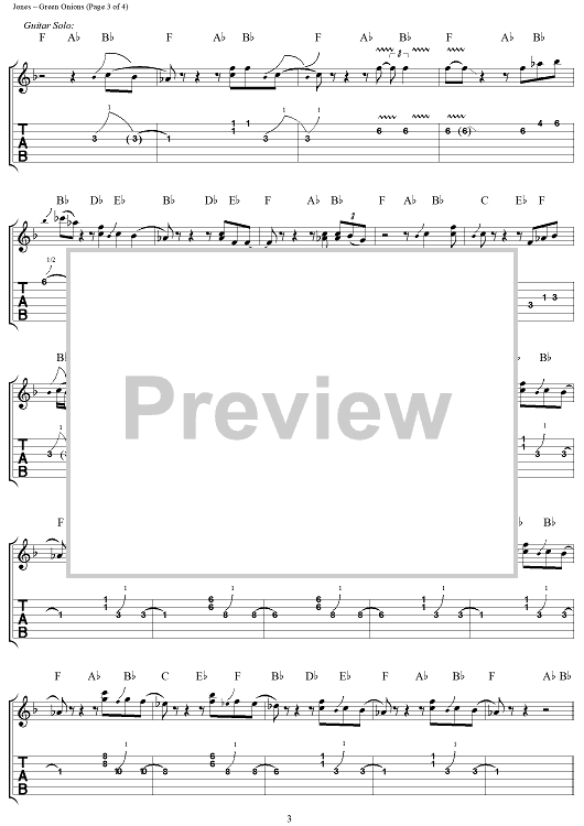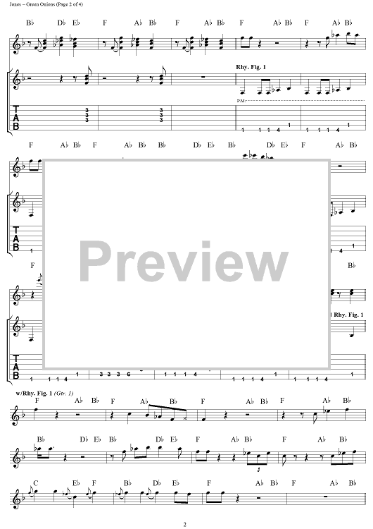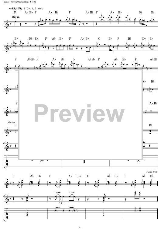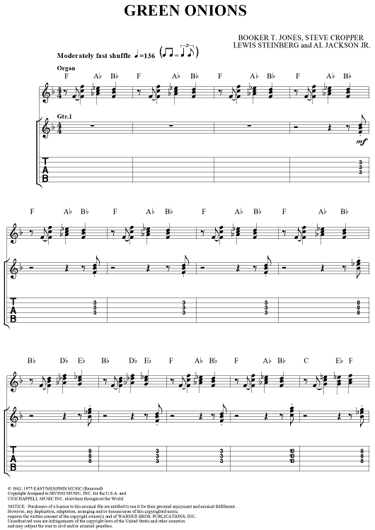 Digital Sheet Music for Green Onions by Booker T. Jones, Lewis Steinberg, Steve Cropper, Al Jackson Jr, Booker T. & The MG's scored for Guitar Tab, Keyboard; id:95882