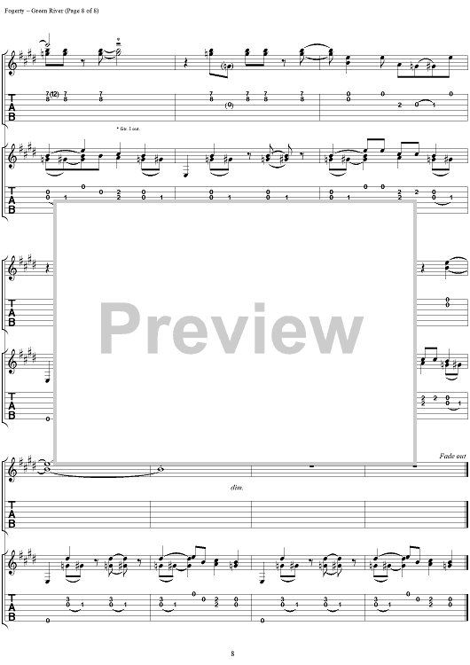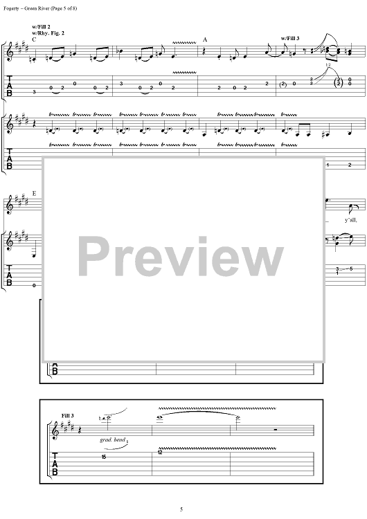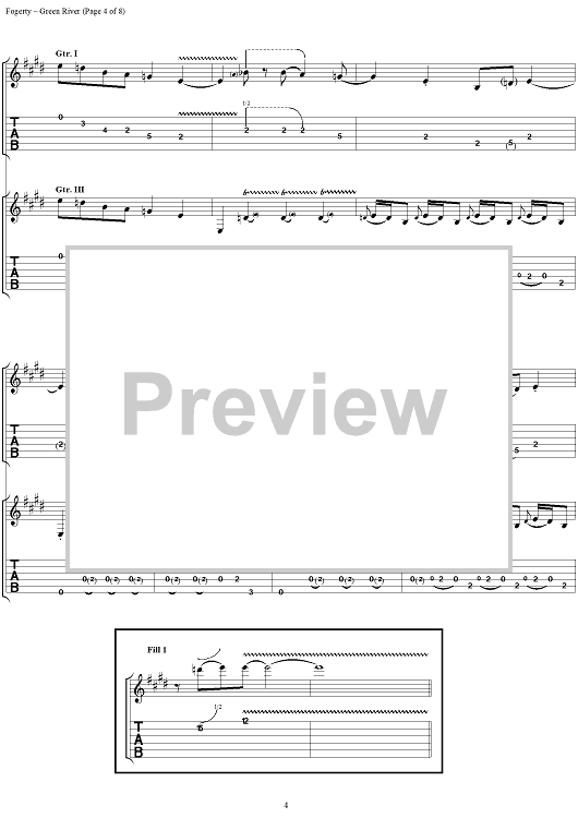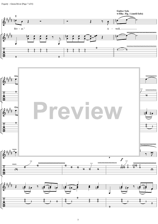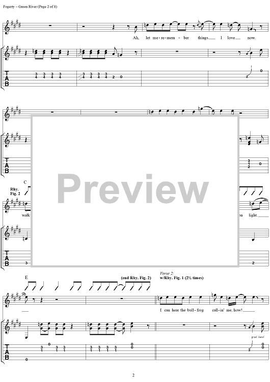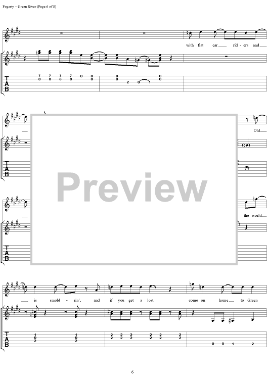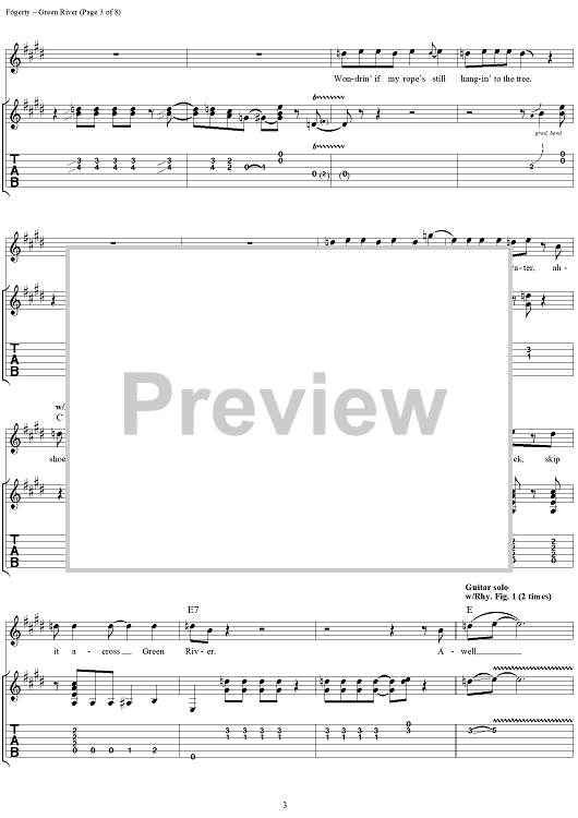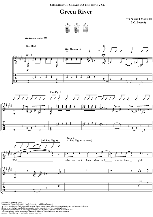 Digital Sheet Music for Green River by John Fogerty, Creedence Clearwater Revival scored for Guitar Tab/Vocal; id:111915