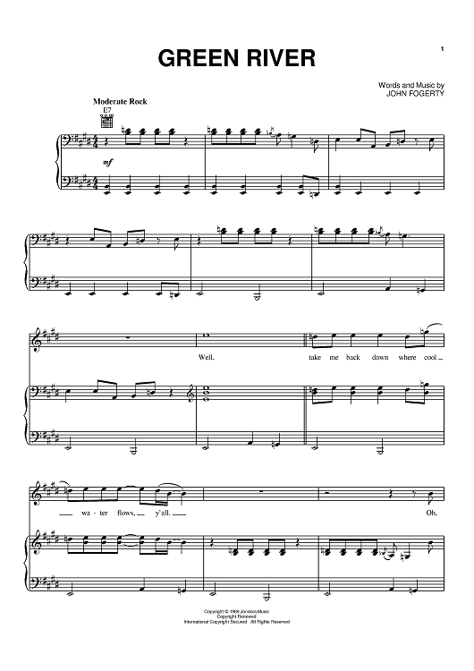 Digital Sheet Music for Green River by John Fogerty, Creedence Clearwater Revival scored for Piano/Vocal/Chords; id:390388