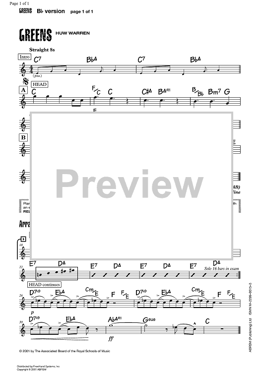 Digital Sheet Music for Greens by , Huw Warren scored for B-flat Lead Sheet; id:355609