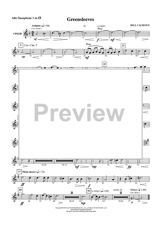 "Greensleeves - Alto Saxophone 1" Sheet Music by Bill Calhoun