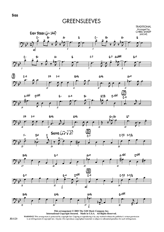 Digital Sheet Music for Greensleeves - Bass by Traditional, Chris Sharp scored for Jazz Ensemble; id:456034