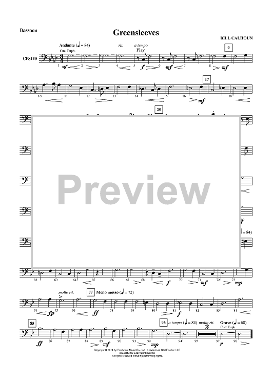 Digital Sheet Music for Greensleeves - Bassoon by Bill Calhoun scored for Concert Band; id:450926