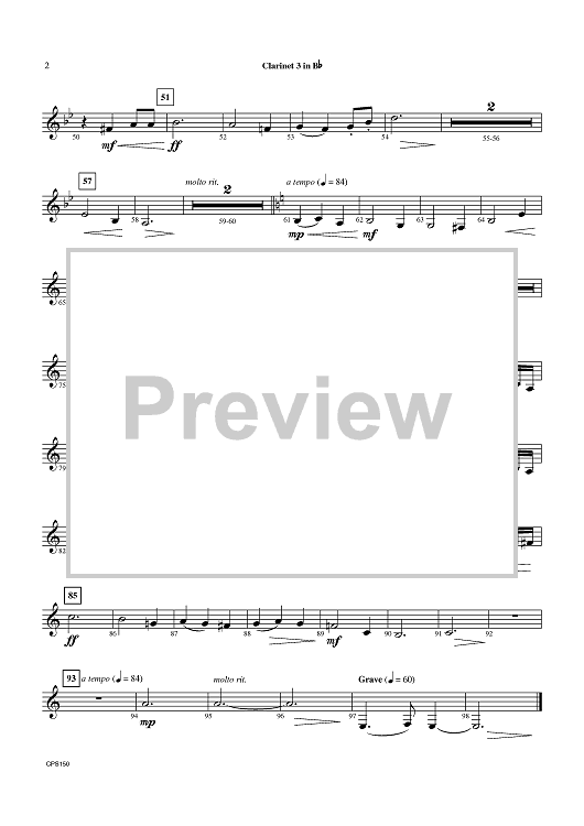 Digital Sheet Music for Greensleeves - Clarinet 3 in Bb by Bill Calhoun scored for Concert Band; id:450924