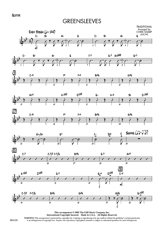 Digital Sheet Music for Greensleeves - Guitar by Traditional, Chris Sharp scored for Jazz Ensemble; id:456032