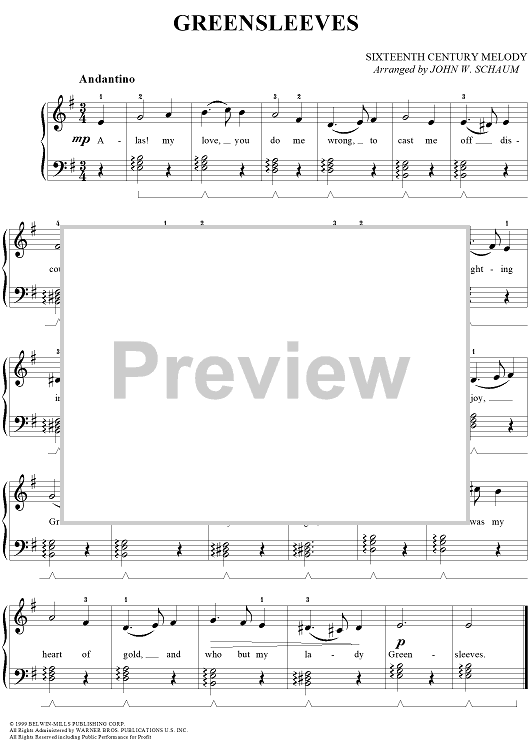 Digital Sheet Music for Greensleeves by John W. Schaum, Traditional scored for Easy Piano/Vocal; id:261110