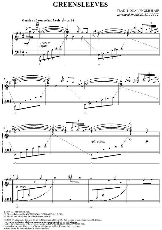 Digital Sheet Music for Greensleeves by Michael Scott, Traditional scored for Piano Solo; id:284374