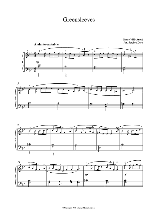 Digital Sheet Music for Greensleeves by Klaus Wunderlich scored for Piano; id:375843