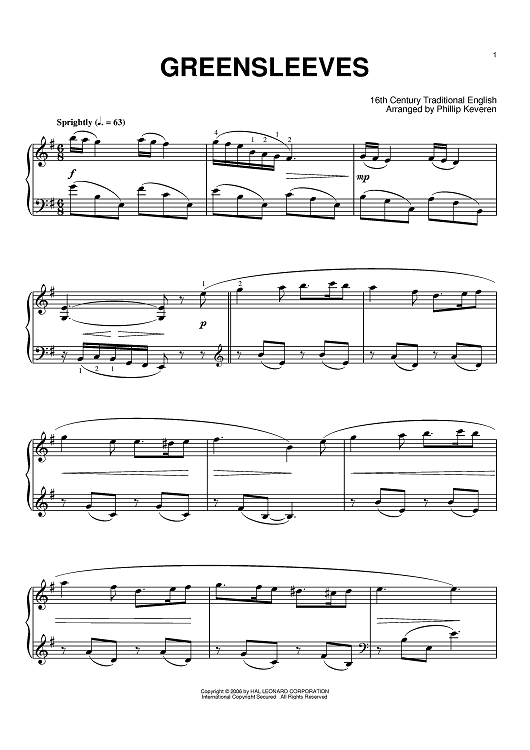 Digital Sheet Music for Greensleeves by scored for Piano; id:388564