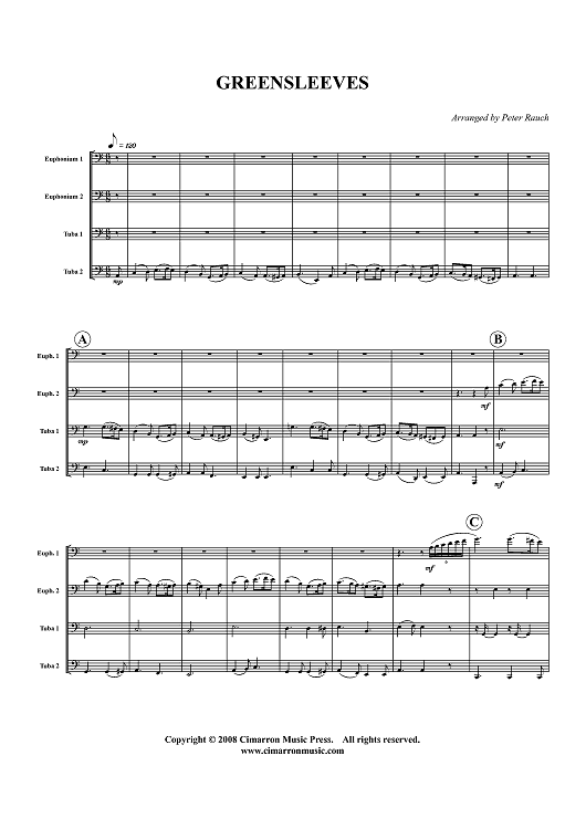 Digital Sheet Music for Greensleeves - Score by Peter Rauch, Traditional scored for Tuba Quartet; id:417267
