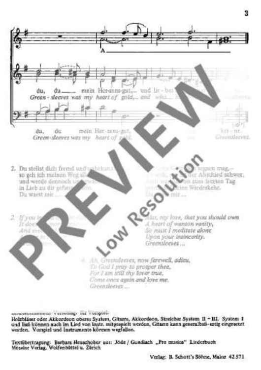 Digital Sheet Music for Greensleeves - Score by Paul Nitsche scored for Mixed Choir With Accordion, Guitar Or Melody Instruments Ad Libitum; id:479658