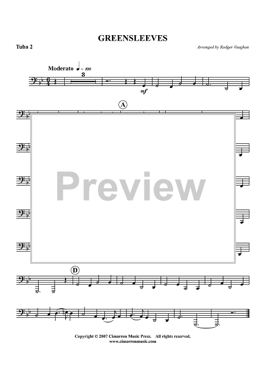 "Greensleeves - Tuba 2" Sheet Music by Traditional