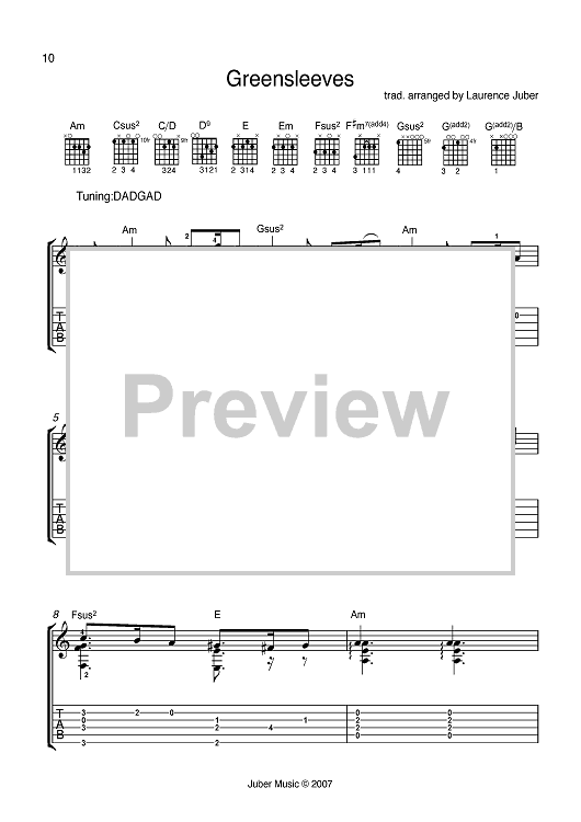 Digital Sheet Music for Greensleeves (With Embedded Audio) by , Traditional, Laurence Juber scored for Guitar Tab; id:453980