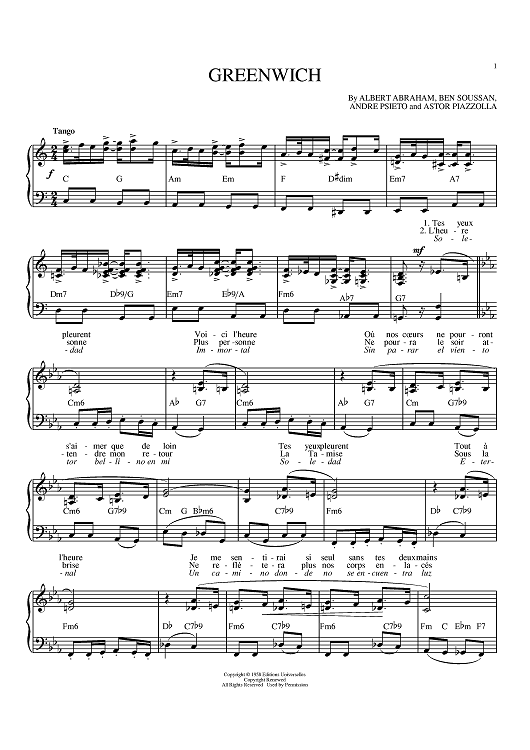 Digital Sheet Music for Greenwich by Albert Abraham, Astor Piazzolla, Andre Psieto, Ben Soussan scored for Piano; id:397342
