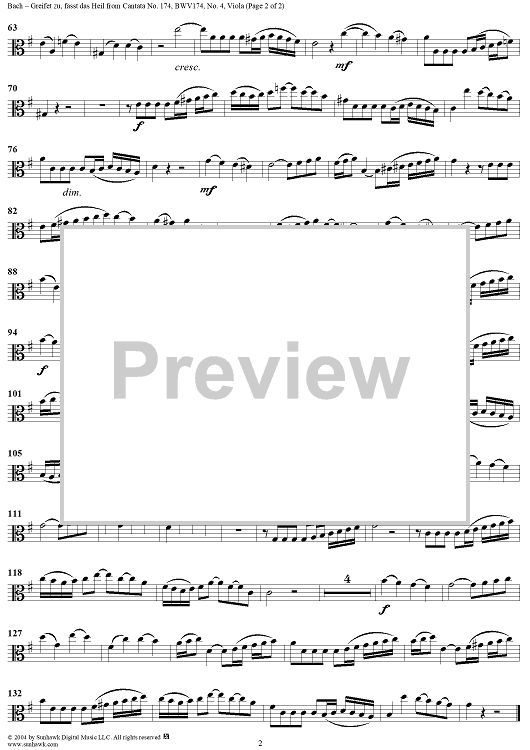 ""Greifet zu, fasst das Heil", Aria, No. 4 from Cantata No. 174: "Ich liebe den Höchsten von ganzem Gemüte" - Viola" Sheet Music by Johann Sebastian Bach