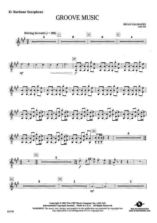 "Groove Music - Eb Baritone Sax" Sheet Music by Brian Balmages