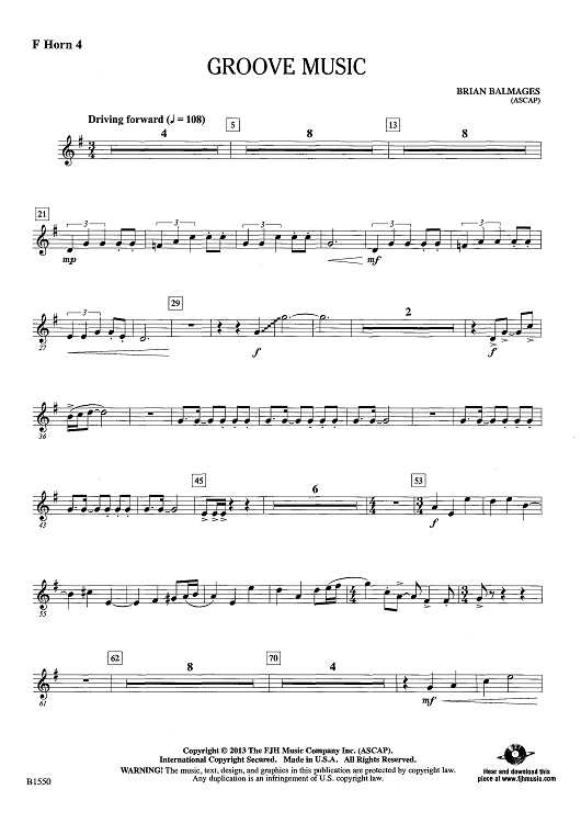 "Groove Music - F Horn 4" Sheet Music by Brian Balmages