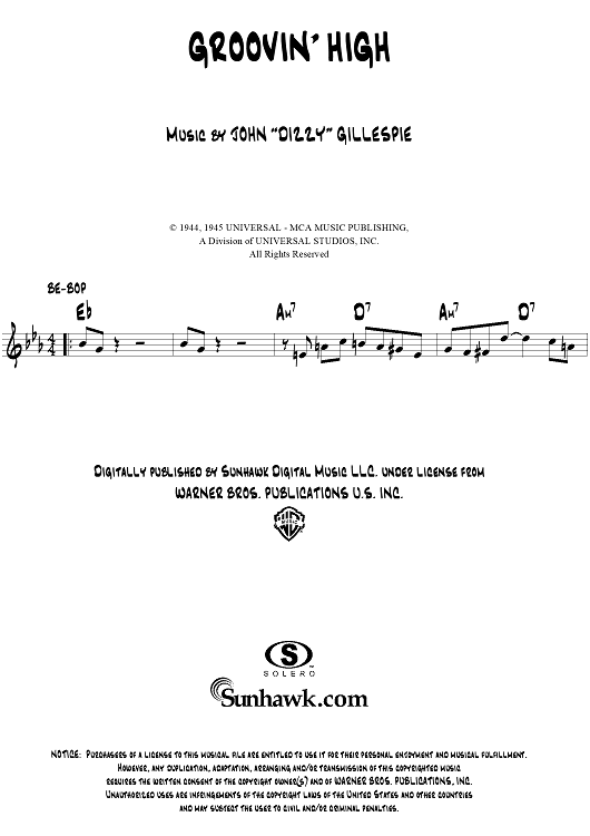 "Groovin' High" Sheet Music by Dizzy Gillespie