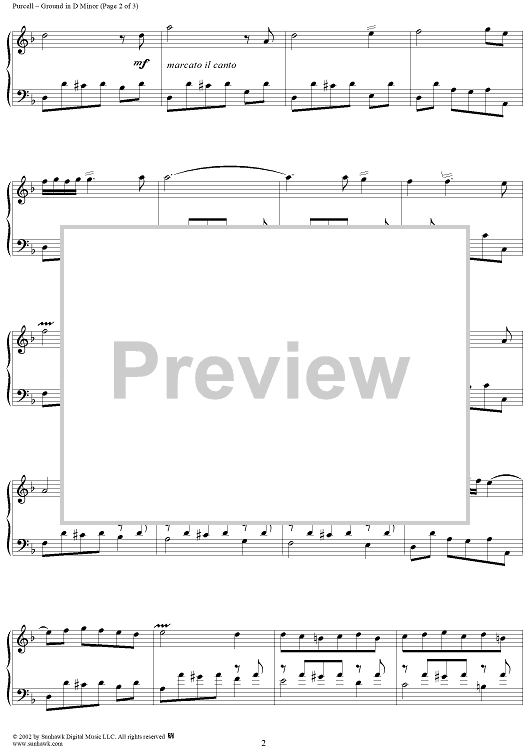 "Ground in D Minor" Sheet Music by Henry Purcell