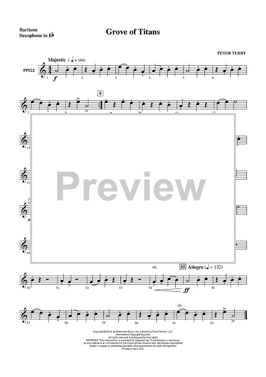 Digital Sheet Music for Grove of Titans - Baritone Sax by Peter Terry scored for Concert Band; id:452426