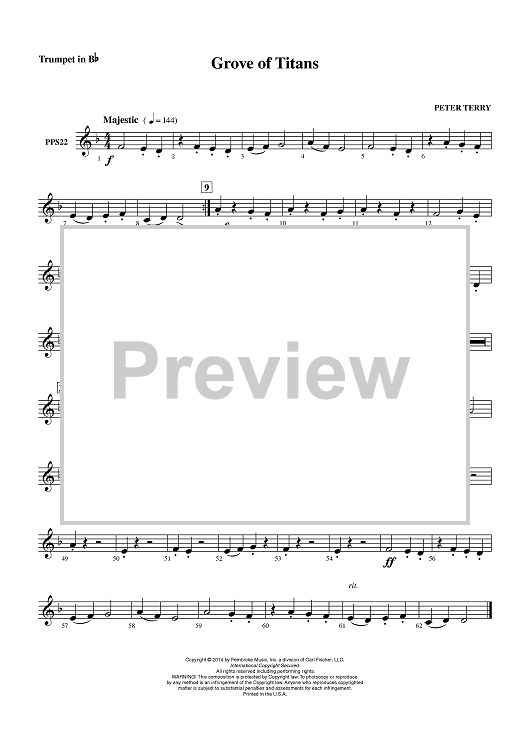 Digital Sheet Music for Grove of Titans - Trumpet in Bb by Peter Terry scored for Concert Band; id:452427