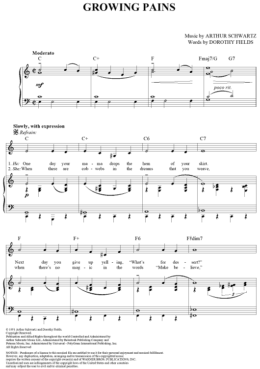 Digital Sheet Music for Growing Pains by Dorothy Fields, Arthur Schwartz scored for Piano/Vocal/Chords; id:310654