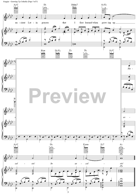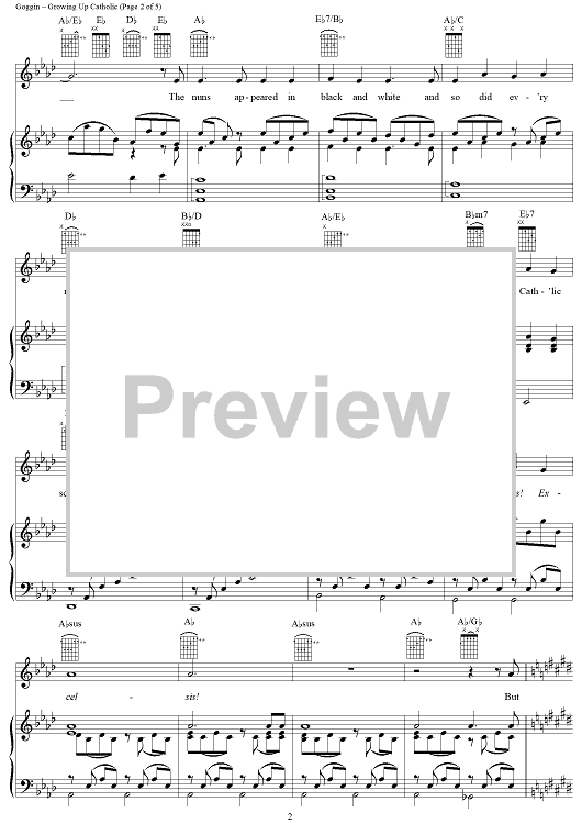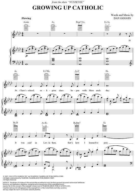Digital Sheet Music for Growing Up Catholic by Dan Goggin scored for Piano/Vocal/Chords; id:267956