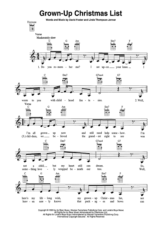 Digital Sheet Music for Grown-Up Christmas List by Linda Thompson, David Foster scored for Ukulele/Vocal; id:467751