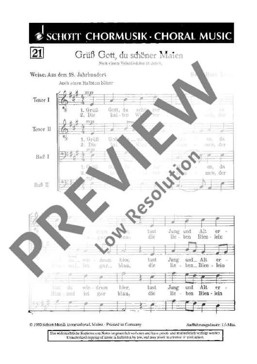 Digital Sheet Music for Grüß Gott, du schöner Maien - Choral Score by Hans Lang scored for Men's Choir (ttbb); id:471906