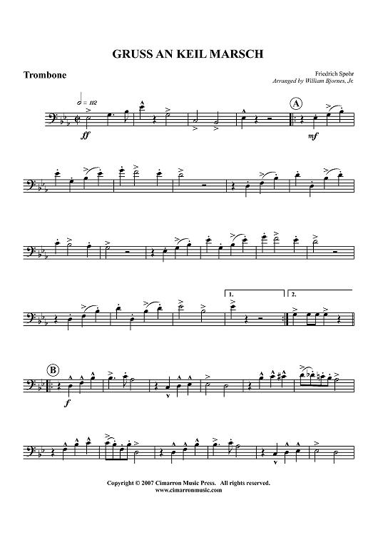 Digital Sheet Music for Gruss an Kiel Marsch - Trombone by , Bill Bjornes, Friedrich Spohr scored for Brass Quintet; id:365648