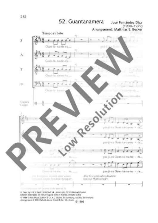 Digital Sheet Music for Guantanamera by Wilfried Fischer, José Fernández Fernández Díaz, Hans Guenther Bastian, Matthias E. Becker scored for Mixed Choir (satb) And Claves; id:490887