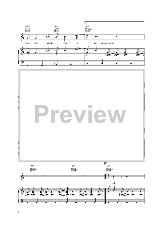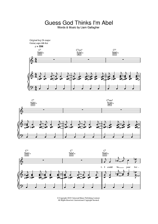 Digital Sheet Music for Guess God Thinks I'm Abel by Oasis, Liam Gallagher scored for Piano/Vocal/Chords; id:387466