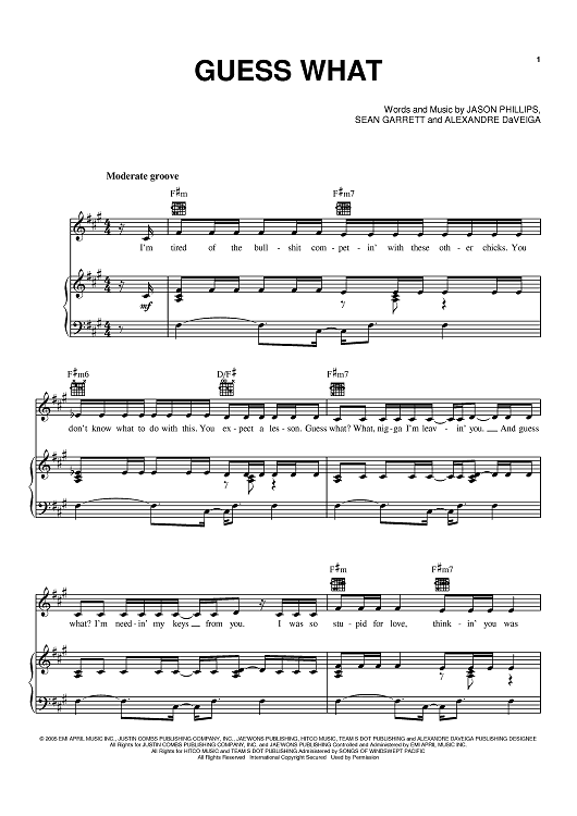 Digital Sheet Music for Guess What by Sean Garrett, Keyshia Cole, Alexandre DaVeiga, Jason Phillips scored for Piano/Vocal/Chords; id:390761