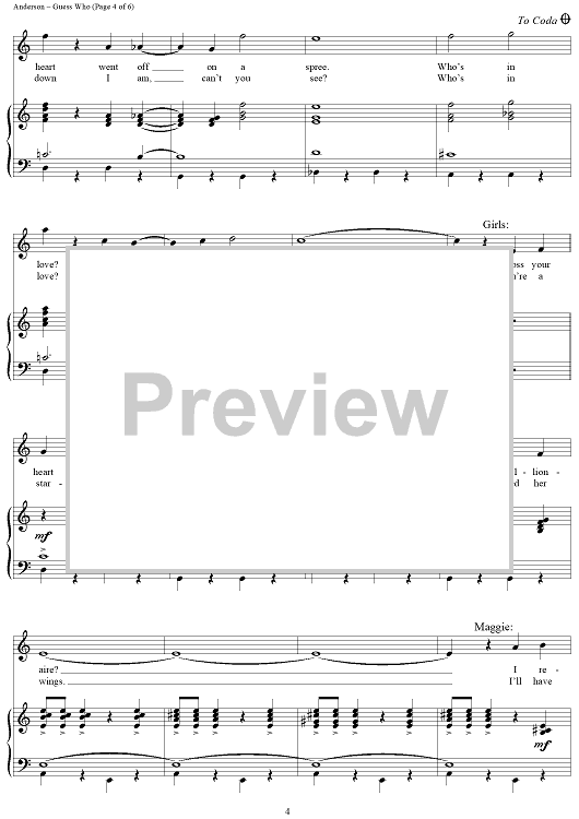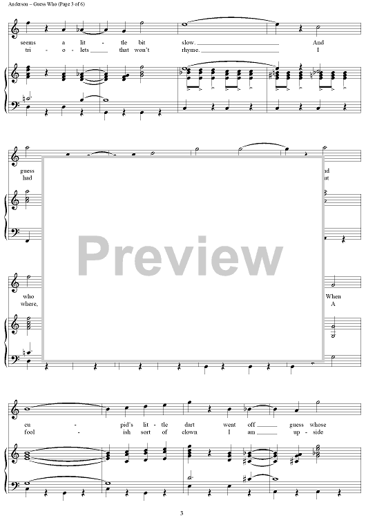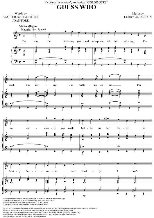 Digital Sheet Music for Guess Who by Leroy Anderson, Walter Kerr, Jean Kerr, Joan Ford scored for Piano/Vocal; id:184003