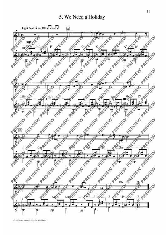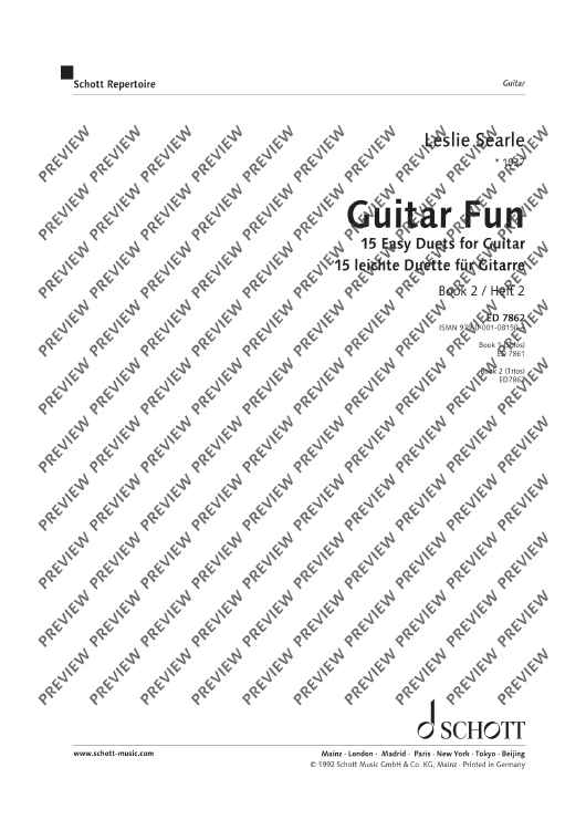 Guitar Fun ist eine Sammlung mit leichten und kurzen Stücken für den Unterricht oder auch einfach so zum Spaß. Welche Musik Spaß macht, ist eine Frage, die wohl jeder für sich beantworten muss. Für „Fans“ gibt es noch Hefte mit Solos (ED 7861) und Trios (ED 7863).