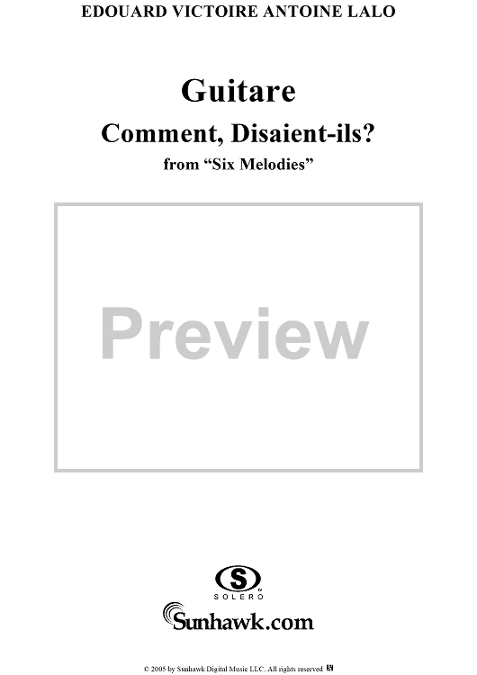 "Guitare (Comment, Disaient - Ils?), Op. 17, No. 1" Sheet Music by Edouard Victoire Antoine Lalo