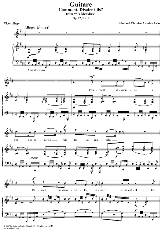 Digital Sheet Music for Guitare (Comment, Disaient - Ils?), Op. 17, No. 1 by Edouard Victoire Antoine Lalo, Victor Hugo scored for Voice/Piano; id:298169