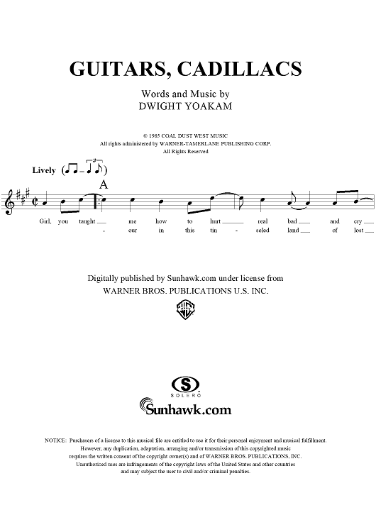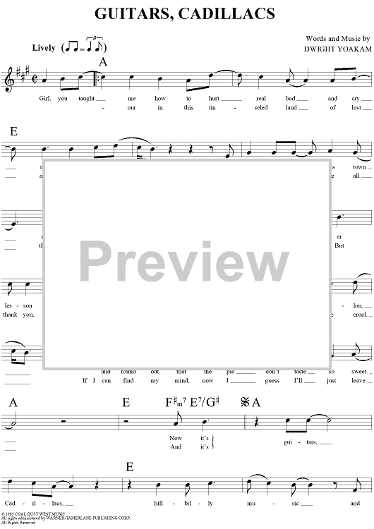 "Guitars, Cadillacs" Sheet Music by Dwight David Yoakam