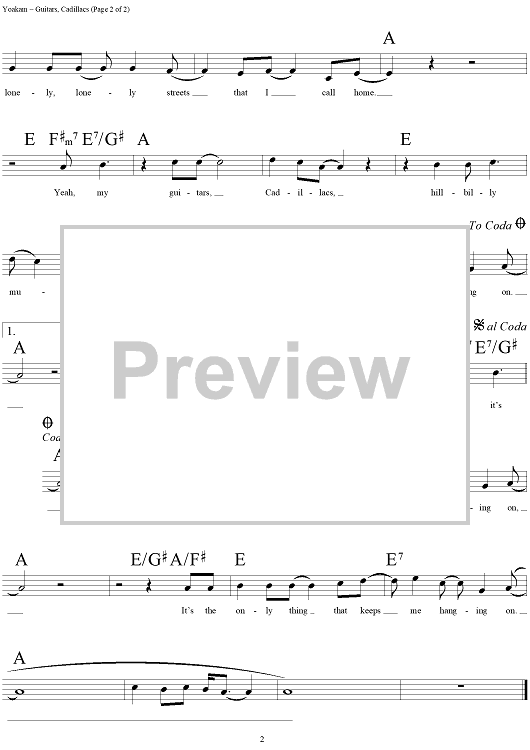 Digital Sheet Music for Guitars, Cadillacs by Dwight Yoakam scored for Lead Sheet; id:262963